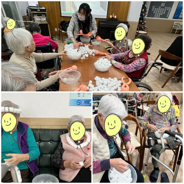 ¿À´ÃÀº ¾î¸£½Åµé°ú ÇÔ²² ¿À°¨Å×¶óÇÇ/´«»ç¶÷ ¸ÂÃß±â ÇÁ·Î±×·¥À» ÁøÇàÇÏ¿´½À´Ï´Ù. ¸ÕÀú °£´ÜÇÑ Àλç¿Í °¡º¿î ½ºÆ®·¹ÄªÀ¸·Î ¸öÀ» Ç®°í ÀÌ¾î ´«°ú °ü·ÃµÈ »çÁø ÀڷḦ °¨»óÇÏ¸ç °Ü¿ï¿¡ ´ëÇÑ Ãß¾ïÀ» ³ª´« ÈÄ, ´«²É ±³±¸¸¦ Ã¥»ó À§¿¡ Èð»Ñ·Á ´«ÀÌ ³»¸®´Â ¸ð½ÀÀ» Ç¥ÇöÇÏ°í ½×±â, ¿Å±â±â µî ´Ù¾çÇÑ Á¶ÀÛ È°µ¿À» Áñ°å½À´Ï´Ù. ÀÌÈÄ µÎ ÆÀÀ¸·Î ³ª´©¾î ´«²ÉÀ» ¸ðÀ¸´Â °ÔÀÓ°ú ´«»ç¶÷À» ¸¸µé¾î °øÀ¸·Î ¾²·¯¶ß¸®´Â Ȱµ¿À» ÁøÇàÇÏ¿´´Âµ¥ ¾î¸£½Åµé²²¼´Â ´ë¡¤¼Ò±ÙÀ°À» ÇÔ²² »ç¿ëÇϸç Àû±ØÀûÀ¸·Î Âü¿©Çϼ̰í, ´«»ç¶÷ ¾²·¯¶ß¸®±â ¼º°ø ½Ã Å« ¸¸Á·°¨À» Ç¥ÇöÇϼ̽À´Ï´Ù. ¿À´Ãµµ ´Ù¾çÇÑ °¨°¢ Àڱذú ½Åü Ȱµ¿À» ÅëÇØ ¾î¸£½Åµé²²¼ Áñ°Ì°í ÇູÇÑ ½Ã°£À» º¸³»¼Ì½À´Ï´Ù.