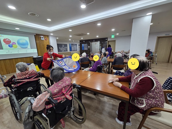 ¿À´ÃÀº ¾î¸£½Åµé°ú ÇÔ²² ¿À°¨Å×¶óÇÇ ¡®¼º°Ô°ø Çڵ庼¡¯À» ÁÖÁ¦·Î ¾î¸£½Åµé°ú Áñ°Å¿î ½Ã°£À» º¸³Â½À´Ï´Ù. ¸ÕÀú ¹Ý°©°Ô Àλ縦 ³ª´©°í ½ºÆ®·¹ÄªÀ¸·Î ¸öÀ» Ç®°í ½Åü Ȱ¼ºÈ¸¦ À§ÇÑ Ã¼Á¶ Ȱµ¿À» ½Ç½ÃÇÏ¿´½À´Ï´Ù. À̾î ÁغñµÈ »çÁøÀڷḦ º¸¸ç °øÀÌ ±ÍÇß´ø ½ÃÀýÀÇ ³îÀ̵é°ú Ã౸ °æ±â¸¦ º¸¸ç ÀÀ¿øÇÏ´ø Ãß¾ï°ú °æÇèÀ» ÇÔ²² °øÀ¯ÇÏ¿´½À´Ï´Ù. ÀÌÈÄ ¼º°Ôó·³ Ã˰¨ÀÌ »ì¾ÆÀÖ´Â ¼º°Ô°øÀ» Ȱ¿ëÇØ °øÃ¼Á¶µµ Çϰí, °ø±¼¸®±â, °øÁÖ°í¹Þ±â, °ñ´ë¿¡ ³Ö±â µî ´Ù¾çÇÑ °ÔÀÓ È°µ¿À» ÁøÇàÇÏ¿´½À´Ï´Ù. °øÀ» ´øÁö°í ÆÐ½ºÇÏ¸ç ¿ôÀ½ÀÌ ²÷ÀÌÁö ¾Ê¾Ò°í, ÀÛÀº ¼º°ø¿¡µµ ¹Ú¼ö°¡ ÅÍÁö¸ç Ȱ±âÂù ºÐÀ§±â°¡ À̾îÁ³½À´Ï´Ù ¼º°Ô°øÀÇ ¿Àµ¹Åäµ¹ÇÑ Ã˰¨ ´öºÐ¿¡ ¾î¸£½ÅµéÀÌ ¡®¼ÕÀÌ µû¶æÇØÁø´Ù¡¯, ¡®±âºÐÀÌ ½Ã¿øÇÏ´Ù¡¯¶ó°í ¸»¾¸ÇϽøç Àç¹ÌÀÖ°Ô Âü¿©Çϼ̽À´Ï´Ù. ¿À´Ãµµ ¾î¸£½Åµé²²¼ Áñ°Ì°í ¸¸Á·ÇÏ´Â ÇϷ縦 º¸³»¼Ì½À´Ï´Ù.