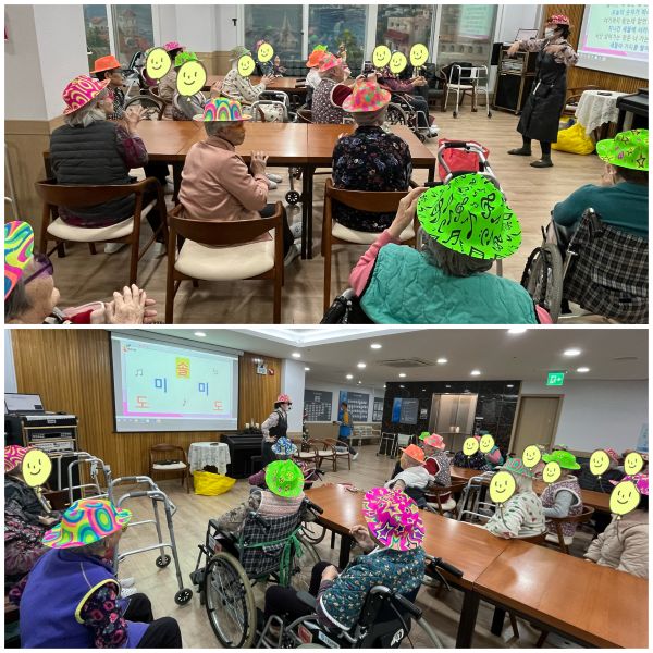 ¿À´ÃÀº ¡®¼Ò¸®²É/³» ³ªÀ̰¡ ¾î¶§¼¡¯¸¦ ÁÖÁ¦·Î ¾î¸£½Åµé°ú ÇÔ²² Áñ°Ì°í Ȱ±âÂù ½Ã°£À» º¸³Â½À´Ï´Ù. ÀÎ»ç ³ë·¡¿Í ½Åü À²µ¿À¸·Î ºÐÀ§±â¸¦ ¹àÈù µÚ, ³ªÀÌ¿¡ ±¸¾Ö¹ÞÁö ¾Ê°í Áñ°Å¿î »îÀ» ´©¸± ¼ö ÀÖ´Ù´Â ¸Þ½ÃÁö¸¦ ÀüÇϸç À̹ÌÁö ÀڷḦ º¸¸ç À̾߱⸦ ³ª´©¾ú½À´Ï´Ù. ÀÌ¾î¼ ³ë·¡¸¦ ºÎ¸£¸ç ¼Õ°¡¶ôÀ» Á¢°í Æì´Â µ¿ÀÛÀ» ¿¬½ÀÇϰí, À½¾Ç¿¡ ¸ÂÃç À²µ¿Çϸç ÁýÁ߷°ú ½Åü ÇùÀÀ·ÂÀ» ³ô¿´½À´Ï´Ù. ¾È°æ°ú ¸ðÀÚ¸¦ Ȱ¿ëÇÑ Æ÷Áî Ȱµ¿°ú ¾Ç±â ¿¬ÁÖ, ³ë·¡ ºÎ¸£±â¸¦ ÅëÇØ Àڽۨ°ú Áñ°Å¿òÀ» ¸¶À½²¯ Ç¥ÇöÇϼ̽À´Ï´Ù. ´ëºÎºÐÀÇ ¾î¸£½Åµé²²¼ Àû±ØÀûÀ¸·Î Âü¿©ÇØ ÁÖ¼ÌÀ¸¸ç, ƯÈ÷ ¡°³» ³ªÀ̰¡ ¾î¶§¼ ¾ÆÁ÷ ûÃáÀ±¶ó´Â °¡»ç¿¡ Å« È£ÀÀÀ» º¸ÀÌ¸ç ¿ôÀ½°ú Ȱ±â°¡ °¡µæÇÑ ½Ã°£ÀÌ µÇ¾ú½À´Ï´Ù.