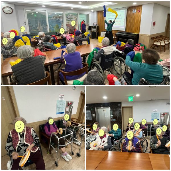 ¿À´ÃÀº ÀÎÁöȰµ¿À¸·Î ¼Ò¸®²É/ÃÖÁø»ç´ì ¼Â°µþÀ» ÁøÇàÇß½À´Ï´Ù. ¾î¸£½ÅµéÀº ½ºÆ®·¹Äª, °Ç°¹Ú¼ö, ¼Õ°¡¶ô ¿îµ¿À» ÅëÇÏ¿© Ç÷¾×¼øÈ¯À» µµ¿Íµå·È½À´Ï´Ù. ÀÎ»ç ³ë·¡¸¦ ºÎ¸£¸ç ¹Ý°¡¿î ¾Ç¼ö¿Í ¼Õ¹Ù´Ú ¸¶ÁÖÄ¡±â¸¦ Çϸç Àλ縦 ³ª´©¼Ì½À´Ï´Ù. Á·µÎ¸®¿Í »ç¸ð°ü´ë¸¦ ¾²°í °£´ÜÈ÷ ³ë·¡¿Í ¼Õµ¿ÀÛ¿¡ ¹ÝÀÀÇϸç Áñ°Å¿î ºÐÀ§±â¸¦ ´À³¢µµ·Ï ÇÏ¿´½À´Ï´Ù. ¾ç¼ÕÀ» Àâ°í ´« ¸ÂÃã°ú ´ëÈ·Î ³ë·¡ µè±â Ȱµ¿À» Çϸç Á·µÎ¸®¸¦ ¾²°í °Å¿ïÀ» º¸¿© µå¸®¸ç ½º½º·ÎÀÇ À¯´ë°¨°ú ÀÚÁ¸°¨À» ³ô¿© µå·È½À´Ï´Ù. ÇÑ °³ÀÇ ºÎ並 °¡Áö°í Á¢¾ú´Ù Æñ´Ù, À§·Î ¿Ã¸®±â ¹Ù¶÷ ºÎÄ¡±â µîÀÇ °£´ÜÇÑ µ¿ÀÛÀ» ÀÌ¿ëÇÏ¿© À½¿ø¿¡ ¸ÂÃç ºÎä ÃãÀ» Ãâ ¼ö ÀÖµµ·Ï µµ¿Íµå·È½À´Ï´Ù. ¡®Å¸Çâ»ìÀÌ¡¯,¡®ÀßÇß±º,ÀßÇß¾î!¡¯,¡®ÃÖÁø»ç´ì ¼Â°µþ¡¯, ¾î¸£½Å ½Åû°î ¡®»ï´Ùµµ¼Ò½Ä¡¯¡®¿ï°í³Ñ´Â ¹Ú´ÞÀ硯µî ´Ù¾çÇÑ ³ë·¡¸¦ ÇÔ²² ºÎ¸£½Ã¸ç üÁ¶¿Í ÇÔ²² Âü¿©Çϼ̽À´Ï´Ù. ¾î¸£½Åµé°ú ¾ç¼Õ ¸¶»çÁöÇϵí ÁÖ¹«¸£¸ç ¸¶¹«¸® Àλ縦 ÇÏ°í °Ý·Á¿Í ¹Ú¼ö·Î ¸¶¹«¸® Çϼ̽À´Ï´Ù.
