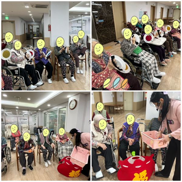 ¿À´ÃÀº ¾î¸£½Åµé°ú ÇÔ²² ¿À°¨Å×¶óÇÇ/º¹ÁÖ¸Ó´Ï ÇÁ·Î±×·¥À» ÁøÇàÇÏ¿´½À´Ï´Ù. °£´ÜÇÑ Àλç¿Í ½ºÆ®·¹ÄªÀ¸·Î ¸öÀ» Ç®°í, ¼³ ¸íÀý°ú °ü·ÃµÈ »çÁø ÀڷḦ ÇÔ²² º¸¸ç º¹°ú ¼Ò¿ø¿¡ ´ëÇØ À̾߱⸦ ³ª´©´Â ½Ã°£À» °¡Á³½À´Ï´Ù. ÀÌÈÄ ´ö´ã ½ºÅ©·¡Ä¡ Ä«µå¸¦ ±Ü°í ¼Ò¿ø°øÀ» »Ì´Â Ȱµ¿À» ÅëÇØ °¢ÀÚÀÇ ¼Ò¿øÀ» ¸»·Î Ç¥ÇöÇØ º¸¾ÒÀ¸¸ç, ´ö´ãÀ» ¿ÜÄ¡¸ç º¹ÁÖ¸Ó´Ï¿¡ °øÀ» ´øÁ® ³Ö´Â °ÔÀÓÀ» ÁøÇàÇÏ¿´½À´Ï´Ù. ¶ÇÇÑ ¾Ë·Ï´Þ·ÏÇÑ ¹Ý¦ÀÌ ½ºÆ¼Ä¿¸¦ ºÙÀÎ Àï¹ÝÀ» Ȱ¿ëÇÏ¿© °»çÀÇ ±¸·É¿¡ ¸ÂÃç ¹ÚÀÚ¸¦ Ä¡¸ç º¹À» ºÎ¸£´Â À²µ¿ Ȱµ¿µµ ÇÔ²² ÇØ º¸¾Ò½À´Ï´Ù. ¾î¸£½Åµé²²¼´Â ¡°º¹À» ¸¹ÀÌ ¹Þ¾Ò´Ù¡±, ¡°¼Ò¿øÀÌ ÀÌ·ç¾îÁú °Í °°´Ù¡±°í ¸»¾¸ÇÏ½Ã¸ç ¹à°í Áñ°Å¿î ¸ð½ÀÀ» º¸¿© Áּ̽À´Ï´Ù. ¿À´Ãµµ ¾î¸£½Åµé²²¼ ¿ôÀ½ °¡µæÇÑ ÇູÇÑ ÇϷ縦 º¸³»¼Ì½À´Ï´Ù.