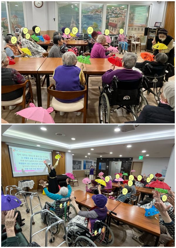¿À´ÃÀº ¡®¼Ò¸®²É/À¯Á¤Ãµ¸®¡¯¸¦ ÁÖÁ¦·Î ¾î¸£½Åµé°ú Áñ°Ì°í Ȱ±âÂù ½Ã°£À» º¸³Â½À´Ï´Ù. ÀÎ»ç ³ë·¡¿Í ½Åü À²µ¿À¸·Î ¸öÀ» Ç®¸ç ºÐÀ§±â¸¦ ¹àÈù µÚ, ¡®À¯Á¤Ãµ¸®¡¯ À½¾ÇÀÇ Àǹ̿¡ ´ëÇØ À̾߱⸦ ³ª´©°í ¡®Á¤ÀÌ ÀÖÀ¸¸é õ¸® ±æµµ ¸ÖÁö ¾Ê´Ù¡¯ ´Â ¶æÀ¸·Î ¿¾ ¿µÈ Æ÷½ºÅÍ À̹ÌÁö¸¦ ÇÔ²² º¸¸ç °¡Á·, Ä£±¸, ÀÌ¿ô°úÀÇ Á¤ÀÌ »î¿¡¼ Å« ÈûÀÌ µÇ¾ú´Ù´Â °æÇèÀ» °øÀ¯ÇÏ¿´½À´Ï´Ù. ÀÌÈÄ À½¿ø¿¡ ¸ÂÃç Çã¹ÖÀ¸·Î ³ë·¡¸¦ ºÎ¸£¸ç Ãß¾ïÀ» ȸ»óÇϰí, ºÎä¿Í ¸®º»À» Ȱ¿ëÇÑ ½Åü Ȱµ¿°ú ¹ÚÀÚ¿¡ ¸ÂÃá ¾Ç±â ¿¬ÁÖ, ³ë·¡ ºÎ¸£±â Ȱµ¿¿¡ Àû±ØÀûÀ¸·Î Âü¿©Çϼ̽À´Ï´Ù. ¾î¸£½Åµé²²¼´Â ¡°¿¾³¯ ³ë·¡¶ó¼ ´õ ½ÅÀÌ ³´Ù¡±°í ¸»¾¸ÇϽøç Àü¹ÝÀûÀ¸·Î Áñ°Ì°í ¸¸Á·½º·¯¿î ½Ã°£À» º¸³»¼Ì°í, ¿À´Ãµµ ÇູÇÑ ½Ã°£ÀÌ µÇ¾ú½À´Ï´Ù.