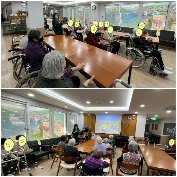 ¿À´Ã ³ë·¡±³½Ç¿¡¼´Â ¡®°íÀå³ º®½Ã°è¡¯À» ÁÖÁ¦·Î Ȱµ¿À» ÁøÇàÇß½À´Ï´Ù. ¸ÕÀú ¾î¸£½Åµé°ú ¾ÈºÎ Àλ縦 ³ª´« ÈÄ ¹ß¼º°ú È£ÈíÀ» µ½´Â ³ë·¡·Î ¸öÀ» Ç®¸ç ÇÁ·Î±×·¥À» ½ÃÀÛÇϰí ÀÌÈÄ °¡¼ö ³ªÈƾÆÀÇ ¡®°íÀå³ º®½Ã°è¡¯ ¿µ»óÀ» ½ÃûÇÏ¸ç °¡»ç¸¦ ÇÔ²² ÀÐ°í ³ë·¡ÀÇ ³»¿ëÀ» À½¹ÌÇÏ´Â ½Ã°£À» °¡Á³½À´Ï´Ù. ¶ÇÇÑ ¡®ÀâÃÊ¡¯, ¡®Ã»ÃáÀ» µ¹·Á´Ù¿À¡¯, ¡®È«½Ã¡¯, ¡®°íÇ⿪¡¯ µîÀÇ ³ë·¡¸¦ ¼±°îÇÏ¿© ¾î¸£½Åµé°ú ÇÔ²² ºÒ·¯ º¸¾Ò½À´Ï´Ù. ¾î¸£½Åµé²²¼´Â °ú°Å¿¡ ÀÚÁÖ µé¾ú´ø Àͼ÷ÇÑ ³ë·¡¿¡ Èï°Ü¿öÇÏ¼Ì°í ¹Ú¼ö¸¦ Ä¡¸ç Àû±ØÀûÀ¸·Î Âü¿©Çϼ̽À´Ï´Ù. ¿À´Ãµµ ³ë·¡¿Í ÇÔ²² ÇູÇÑ ÇϷ縦 º¸³»¼Ì½À´Ï´Ù.