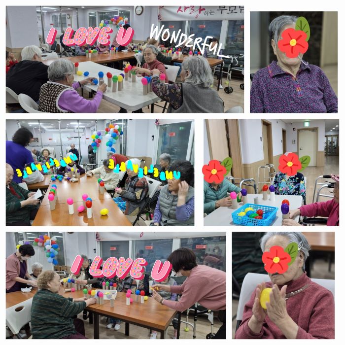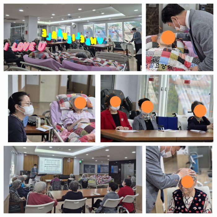 µû¶æÇÑ ÇÞ»ì ¾Æ·¡, ¾î¹öÀ̳¯À» ¸ÂÀÌÇÏ¿© ÀڽĵéÀ» ³º¾Æ ±â¸£½Ã¸ç ¾Æ³¦¾ø´Â »ç¶û °ú Çå½ÅÀ» ´ÙÇϽŠ¿ì¸® ¾î¸£½ÅµéÀÇ Å©½Å »ç¶û°ú ÀºÇý¿¡ °¨»çµå¸®°í, °Ç°°ú ÇູÀ» ±â¿øÇÏ´Â ¶æ±íÀº ÀÚ¸®¸¦ ¸¶·ÃÇß½À´Ï´Ù. 1ºÎ. ¿ÀÀü ´Ù°úȸ ¹× Ä«³×ÀÌ¼Ç ´Þ¾Æµå¸®±â ½Ã°£¿¡´Â, '¾î¹öÀÌ ÀºÇý' ³ë·¡¸¦ µéÀ¸¸ç, Â÷ ¿Í °úÀÚ¸¦ µå½Ã°í, ´ëÇ¥¿øÀå´Ô °ú ½Ã¼³Àå´Ô²²¼ ¼Õ¼ö ¾î¸£½Åµé²² Ä«³×À̼ÇÀ» ´Þ¾Æµå¸®¼Ì°í, ¹Ìó Âü¼®ÇÏÁö ¸øÇϽŠ¾î¸£½Åµé²²´Â ¿ä¾ç¿ø Á¾»çÀÚµéÀÌ ¾î¸£½ÅµéÀÇ °Ç°À» ±â¿øÇϸç, Ä«³×À̼ÇÀ» ´Þ¾Æµå·È½À´Ï´Ù.  2ºÎ. ¿ÀÈÄ ¾î¹öÀ̳¯ ÃàÇÏ ÀÜÄ¡¿¡´Â ¿ä¾ç¿ø¿¡¼ ÁغñÇÑ, ¶±, ºÎÃßÈ£¹ÚÀü, ¾î¹¬ÅÁ, ¼ö¹ÚµîÀ» ÁغñÇÏ¿© ´ëÁ¢ÇØ µå¸®°í, ½Å³ª´Â ³ë·¡ ¿Í ¿¹»Û Æ÷ÅäÁ¸À» ¸¶·ÃÇÏ¿© »çÁøµµ Âï°í ¸¼°í µû¶æÇÑ º½ÇÞ»ìÀ» Áñ±â½Ã¸ç, ¿©À¯·Î¿î ½Ã°£À» º¸³»¼Ì½À´Ï´Ù. 3ºÎ. ¼Ò¸®²É / Àå¹Ì ÇÁ·Î±×·¥À» ÇÏ¿´½À´Ï´Ù. ¾î¹öÀ̳¯ ÃàÇÏÀÜÄ¡ÀÇ ¸¶¹«¸®·Î, ¾î¸£½Åµé²² Àå¹Ì²É °ú Àå¹Ì ºê·ÎÄ¡¸¦ ´Þ¾Æµå¸®°í, 'Àå¹Ì' ³ë·¡¸¦ ºÎ¸£¸ç, ½ºÆ®·¹Äª °ú °ÔÀÓÀ» ÇÏ¿© ¾î¸£½Åµé°ú ¼ÒÅëÇϸç, Áñ°Å¿î ½Ã°£À» º¸³Â½À´Ï´Ù. ¾î¸£½ÅµéÀº Àå¹Ì²ÉÀ» µé°í, Àå¹ÌÇÉÀ» ²ÅÀº ¿¹»Û ¸ð½ÀÀ» ¿µ¿øÈ÷ ³²±â±â À§ÇØ »çÁøµµ ¸¹ÀÌ ÂïÀ¸½Ã°í, ¸¹ÀÌ ¿ôÀ¸½Ã¸ç Áñ°Å¿î ½Ã°£À» º¸³»¼Ì½À´Ï´Ù.  |