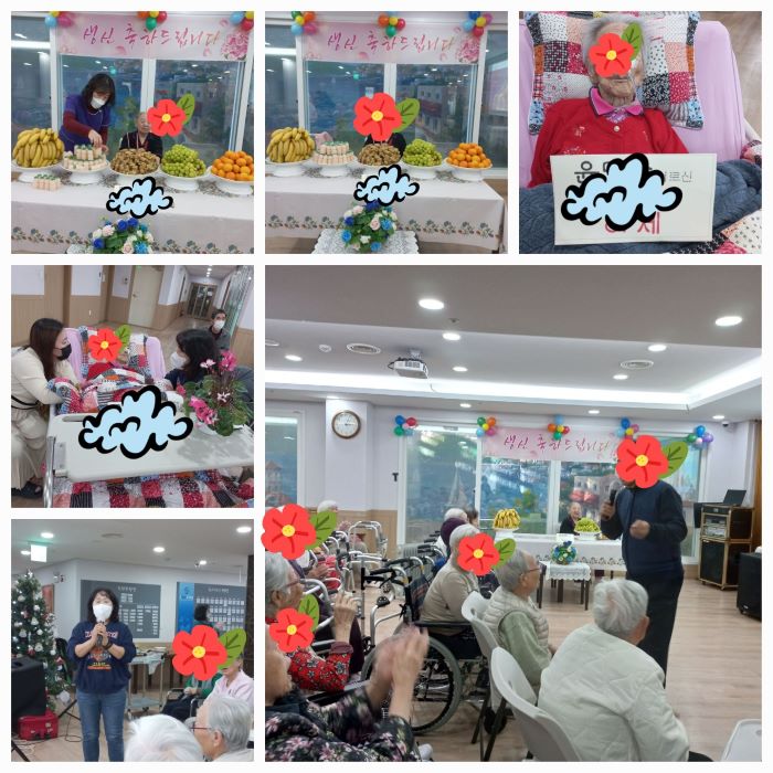 2ºÎ ÃàÇÏ °ø¿¬¿¡¼´Â ÀÚ¿øºÀ»ç·Î ¿ÍÁֽŠÁ¶*Çü ¼±»ý´Ô°ú ÇÔ²² Èï°Ü¿î ³ë·¡ ¿Í ÃãÀ¸·Î À̾îÁö´Â ½Å³ª´Â °ø¿¬À» Áñ±â°í, »ý½ÅÀÜÄ¡¿¡ Âü¼®ÇϽŠÀ±*¼÷ ¾î¸£½Å º¸È£ÀÚ´ÔÀÇ '¾î¸Ó´ÔÀºÇý'¸¦ µéÀ¸¸ç °¡½¿ ÂôÇÑ °¨µ¿ÀÇ ½Ã°£À» °®¾ú½À´Ï´Ù. ¾î¸£½ÅµéÀº ¿ä¾ç¿ø¿¡¼ ÁغñÇÑ ¶±, °úÀÏ, À½·á ¿Í À±*¼÷¾î¸£½Å º¸È£ÀÚ´Ô²²¼ º¸³»ÁֽаúÀϵîÀ» °£½ÄÀ¸·Î µå½Ã°í ¶Ç Ãß°¡·Î µå½Ã¸ç Áñ°Å¿î ½Ã°£À» º¸³»¼Ì½À´Ï´Ù. |