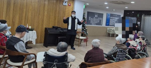 ¿À´ÃÀº ÀÎÁöȰµ¿À¸·Î ¼Ò¸®²É/Å©¸®½º¸¶½º¸¦ ÁøÇàÇß½À´Ï´Ù. ¾î¸£½ÅµéÀº ½ºÆ®·¹Äª, °Ç°¹Ú¼ö, ¼Õ°¡¶ô ¿îµ¿À» ÅëÇÏ¿© Ç÷¾×¼øÈ¯À» µµ¿Íµå·È½À´Ï´Ù. ÀÎ»ç ³ë·¡¸¦ ºÎ¸£¸ç ¹Ý°¡¿î ¾Ç¼ö¿Í ¼Õ¹Ù´Ú ¸¶ÁÖÄ¡±â¸¦ Çϸç Àλ縦 ³ª´©¼Ì½À´Ï´Ù. ¾ç¼ÕÀ» Àâ°í ´« ¸ÂÃã°ú ´ëÈ·Î ³ë·¡ µè±â Ȱµ¿À» ÇÏ°í »êŸ ¸ðÀÚ¸¦ Âø¿ëÇÑ °»ç°¡ ¡®¸Þ¸® Å©¸®½º¸¶½º¡¯ Å« ¼Ò¸®·Î ÀλçÇÏ¸ç ¾î¸£½ÅÀÇ Áñ°Å¿òÀ» °®µµ·Ï ÇÏ¿´½À´Ï´Ù. Å©¸®½º¸¶½º ¸ðÀÚ¸¦ Âø¿ëÇÏ°í ¼ÕÀ» Èçµé¸ç ij·Ñ ¸Þµé¸®¸¦ ÇÔ²² ºÎ¸£¸ç ¸¶À½ÀÇ Áñ°Å¿ò°ú ½Åü ¿¡³ÊÁö¸¦ ³ôÀÌ°í °»ç°¡ ±Ý¼Ó ¾Ç±â¸¦ µé°í ¾î¸£½ÅÀº ¸»·¿À» ÀÌ¿ëÇÏ¿© µÎµå¸®¸ç ÀºÀºÇÑ ¼Ò¸®¸¦ ³»°í ¿¬ÁÖÇÒ ¼ö ÀÖµµ·Ï µµ¿Í µå·È½À´Ï´Ù. ¾î¸£½Åµé°ú ¾ç¼Õ ¸¶»çÁöÇϵí ÁÖ¹«¸£¸ç ¸¶¹«¸® Àλ縦 ÇÏ°í °Ý·Á¿Í ¹Ú¼ö·Î ¸¶¹«¸® Çϼ̽À´Ï´Ù.