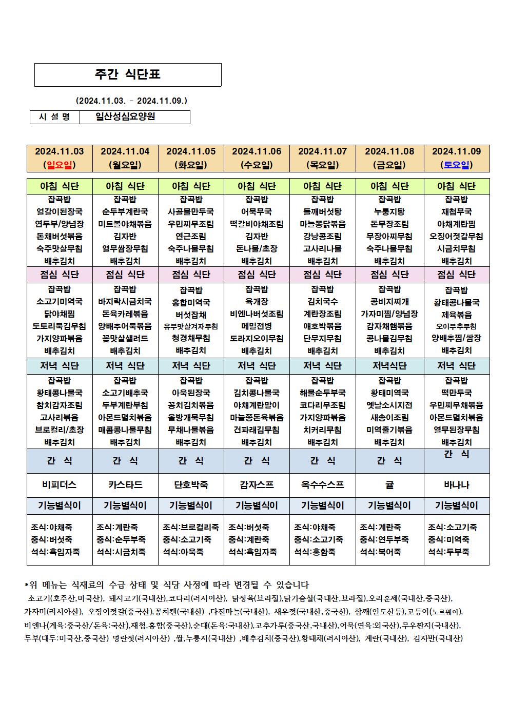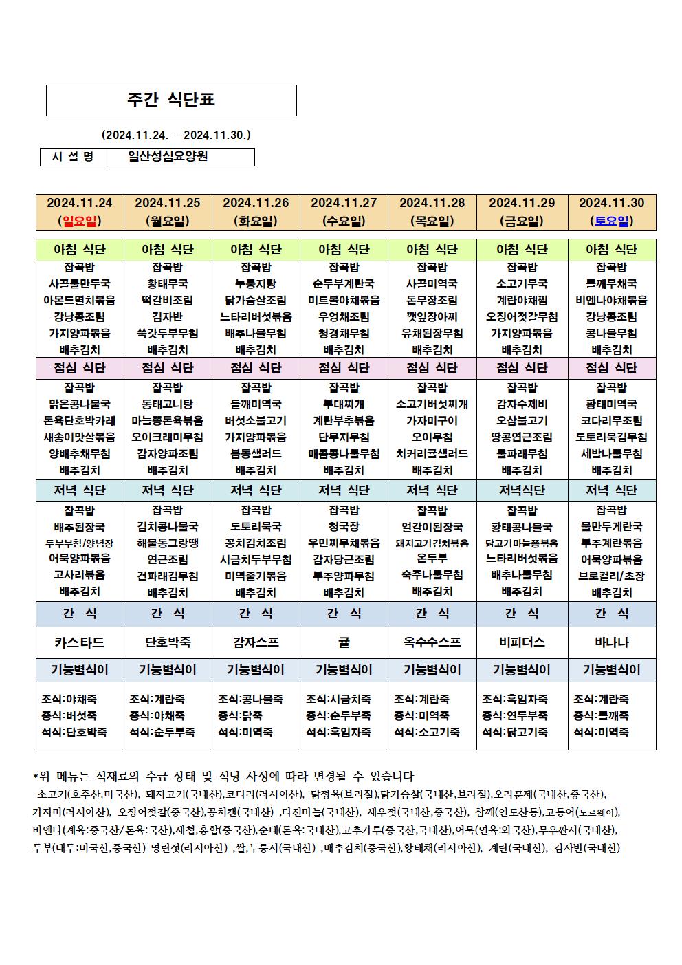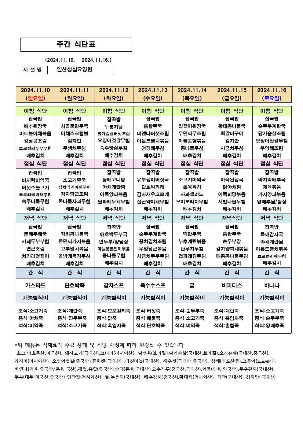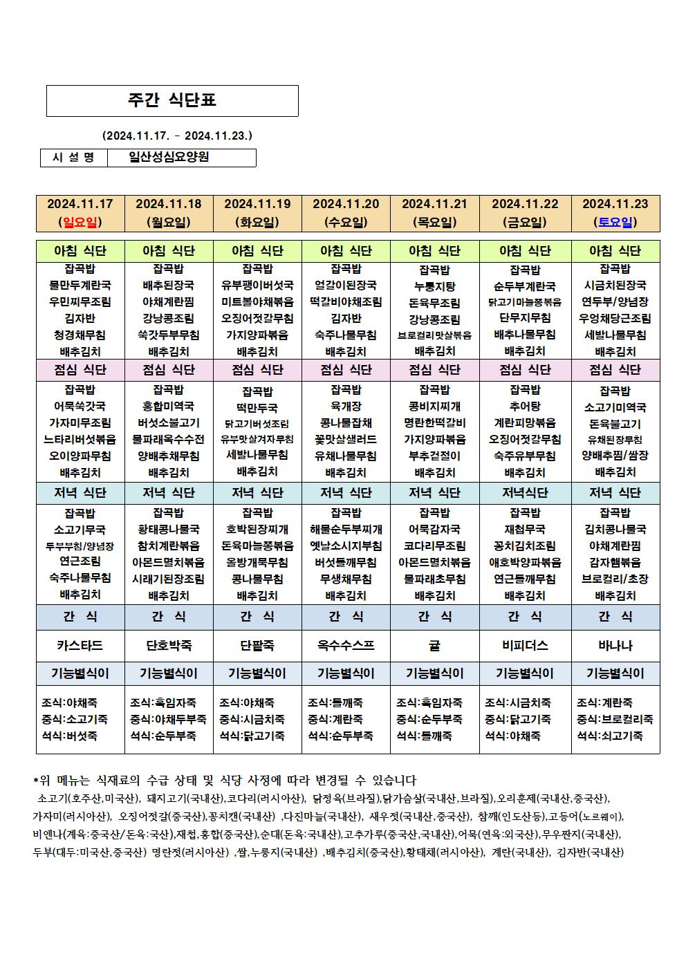 | 2024-11-15(±Ý) ½Ä´Ü ÀÔ´Ï´Ù. |