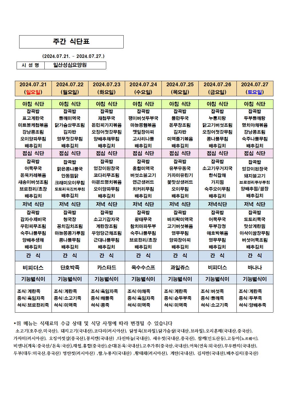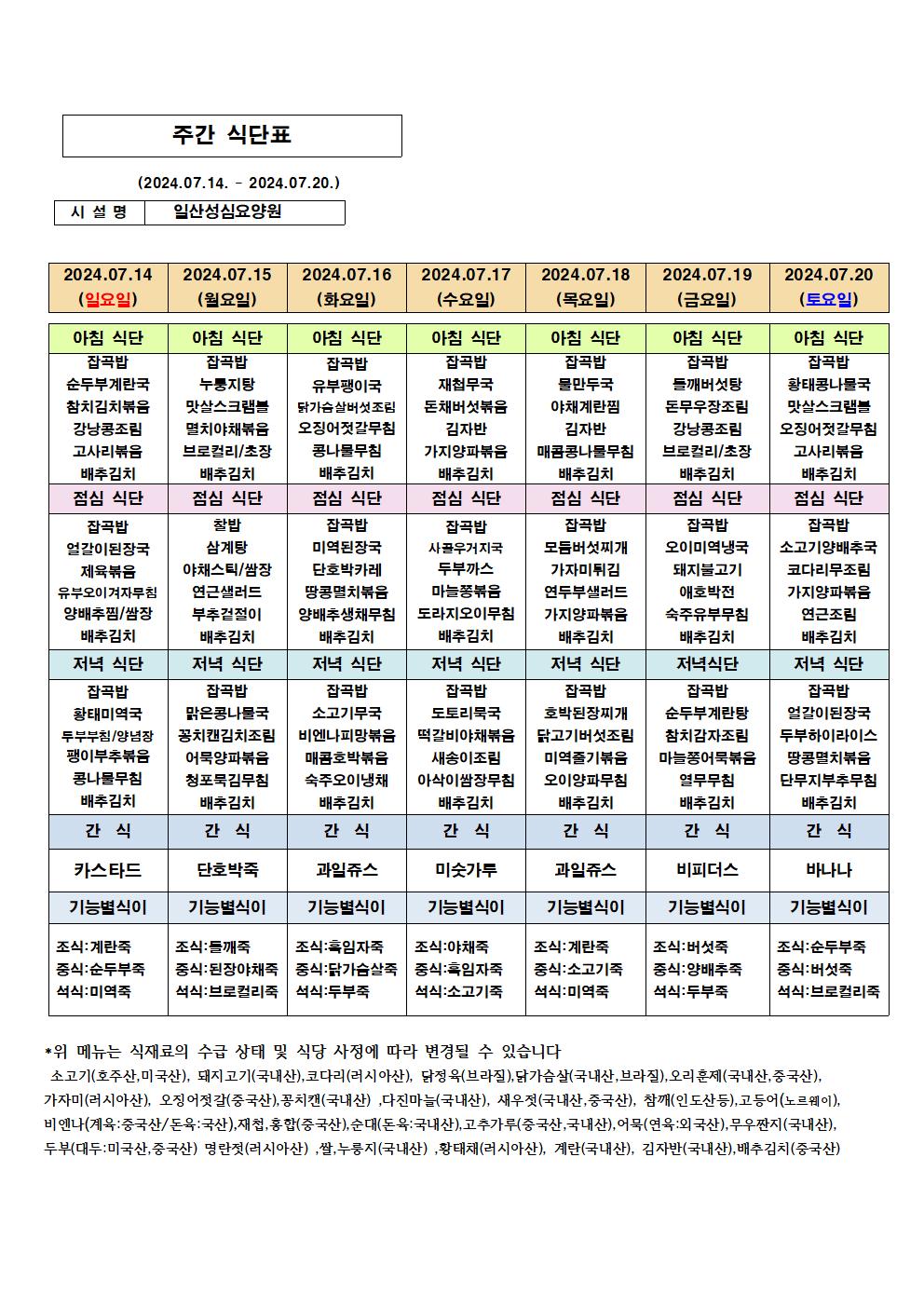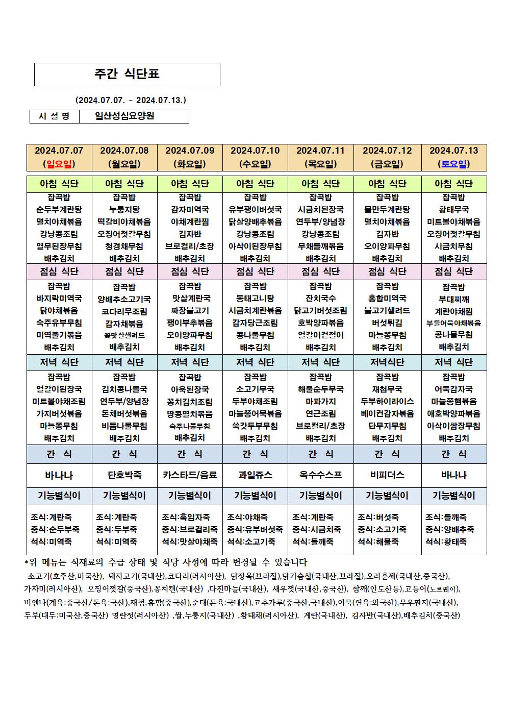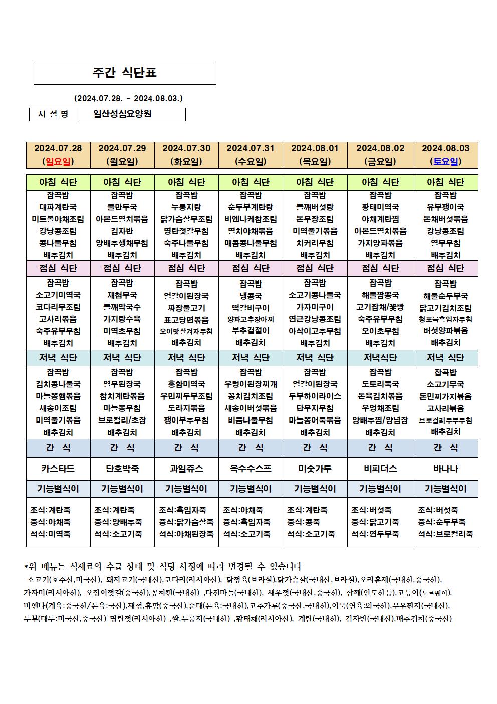 | 2024-07-31(¼ö) ½Ä´ÜÀÔ´Ï´Ù. |
